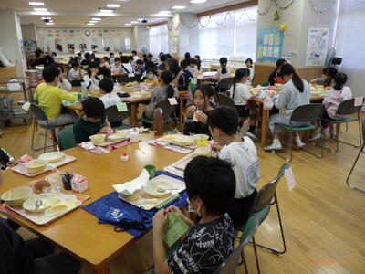 11月お誕生日給食 投稿: 元郷南 (15:38) 11月生まれのみなさん、お誕生日おめでとうございます。今月もお誕生日を迎える児童をみんなでお祝いする「お誕生日給食」を行いました。ケーキを囲んで、笑顔いっぱいの時間を過ごしました。初めは緊張していた子も、同じ月に生まれたという共通の話題があればお話し出来ます。これからの一年が健康で実り多いものになりますように。 -