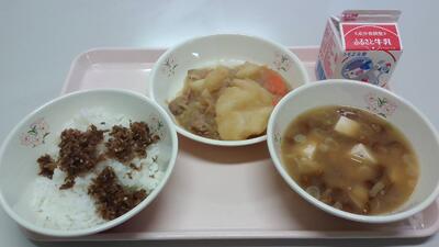 10月16日 投稿: 元郷南 (10/16) カテゴリー: 今日の給食 今日の給食:牛乳、肉じゃが、なめこ汁、エコふりかけ 今日はエコふりかけを出しました。 一度美味しいかつおだしを取ったあと、役目を果たしたかつお節が美味しく生まれ変わる魔法のふりかけです。 最後まで美味しいふりかけは魅力的で、児童もたくさん食べていました。 -