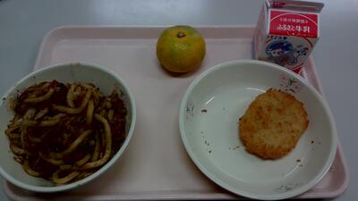 11月11日 投稿: 元郷南 (13:40) カテゴリー: 今日の給食 今日の給食:牛乳、ソース焼きうどん、川口ポテトコロッケ、みかん 今日は川口市産のじゃがいもを使用したポテトコロッケです。 ホクホクとしたじゃがいもと、サクサクの衣がとても美味しいコロッケです。 みんなは川口市産のじゃがいもどうだったかな? -