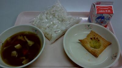 11月25日 投稿: 元郷南 (13:34) カテゴリー: 今日の給食 今日の給食:牛乳、けんちんうどん、さつまいもパイ 今日はさつまいもパイです。2年生が頑張って育て、収穫したさつまいもを使用しました。 美味しく出来上がり、みんな「もっと食べたい!」と言っていました。 -