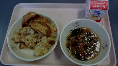12月8日 投稿: 元郷南 (13:14) カテゴリー: 今日の給食 今日の給食:牛乳、中華おこわ、ぎょうざ、春雨スープ 今日は中華な献立です。カリッと揚がったぎょうざともちもちの中華おこわ、つるつるとした春雨スープ。どれも美味しく作りました。 子供たちからは「今日の給食最高!」という声もたくさん。2学期もあと少し。たくさん食べて元気に過ごしましょう。 -