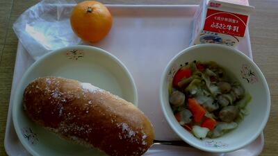 12月12日 投稿: 元郷南 (14:10) カテゴリー: 今日の給食 今日の給食:牛乳、揚げパン、ポトフ、みかん 今日は揚げパンです。ほぼ月一で出てきますが、毎回奪い合いになる大人気メニューです。 クラスの様子を見に行くと、おかわりをしたい子が頑張って給食を食べている様子が見られました。 給食は逃げないので、落ち着いて食べてね。 -