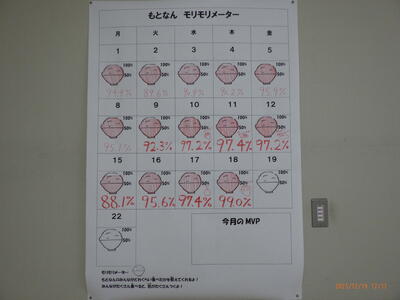 「食べ物は食べることで栄養となる。」ということで、もとなんでは給食をどのくらい食べたかを掲示しています。