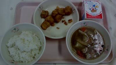 1月21日 投稿: 元郷南 (14:44) カテゴリー: 今日の給食 今日の給食:牛乳、ごはん、たらのゆず香あえ、せんべい汁 今日はせんべい汁です。小麦と水で作った硬いせんべいを割り汁に入れ、みんなが食べるころにはもちもちと美味しくなったものを提供しています。 そのもちもち触感から、『おもちだと思った!』という声もたくさんありました。 -