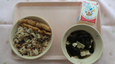 4月22日 投稿: 元郷南 (14:41) カテゴリー: 今日の給食 今日の給食:牛乳・ひじきごはん・ししゃもの天ぷら・わかたけ汁 今日はわかたけ汁です。出汁にたけのことわかめを入れた汁です。たけのこの旬は春で、成長が早いのが特徴です。 いつでもおいしいですが旬だけのおいしさは今だけ。ぜひお店でも生のたけのこがないか探してみてください。 -